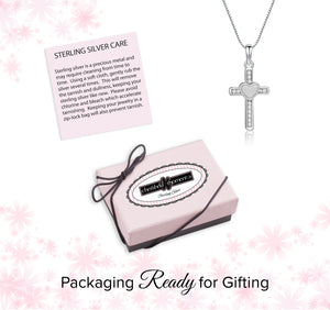 Girls gorgeous sterling silver cross necklace is created with sparkling cubic zirconia stones and accented with a dainty heart in the center. This is available on a 14 inch or 16-18 inch (adjustable) Italian chain with quality lobster claw clasp. Perfect gift for those special occasions and makes a great baptism, christening, dedication, first communion or confirmation. This comes in a beautiful black/pink gift box ready for gifting.