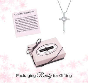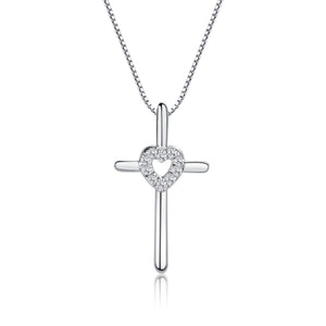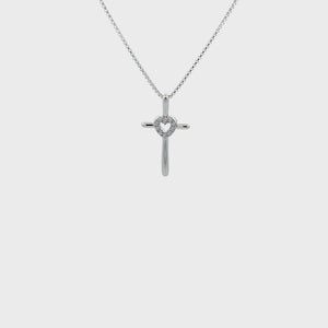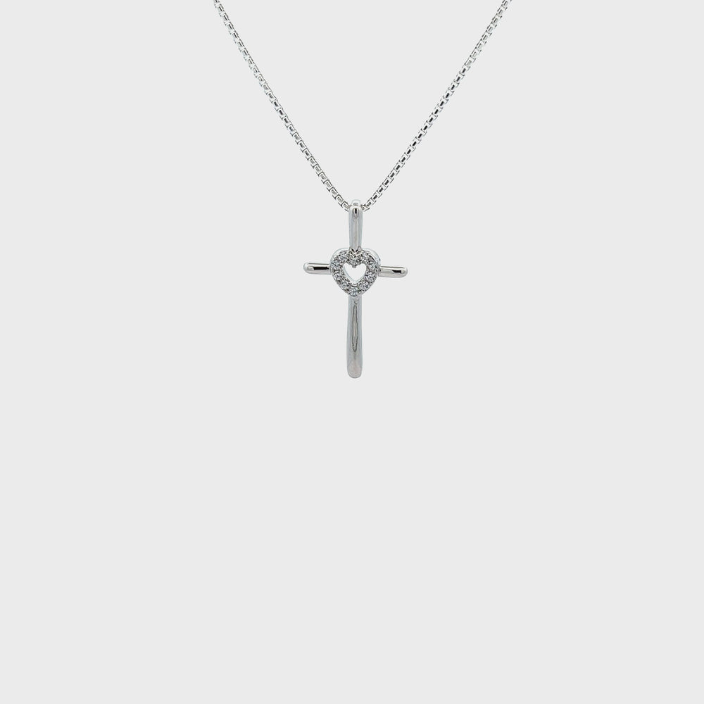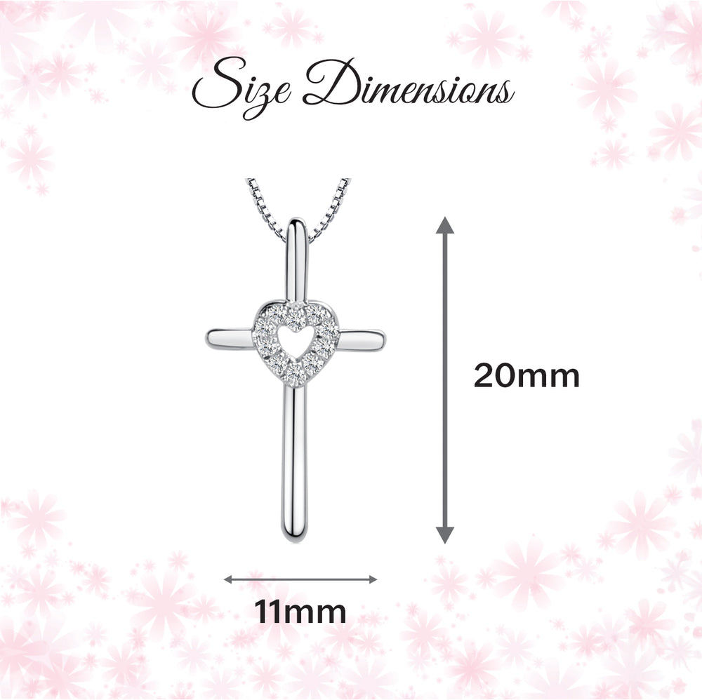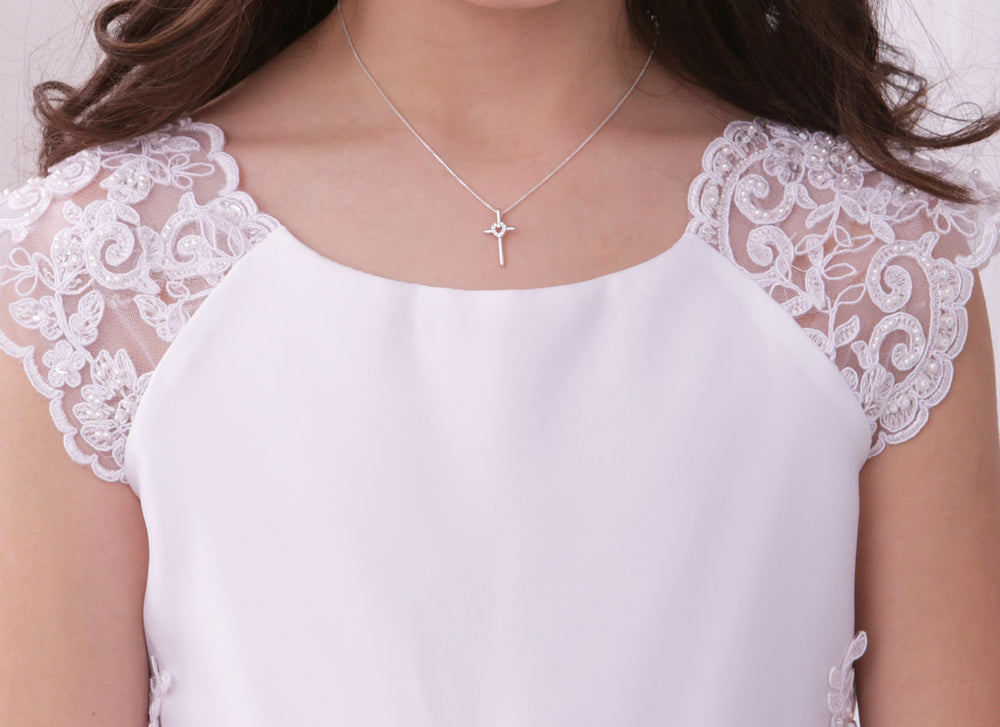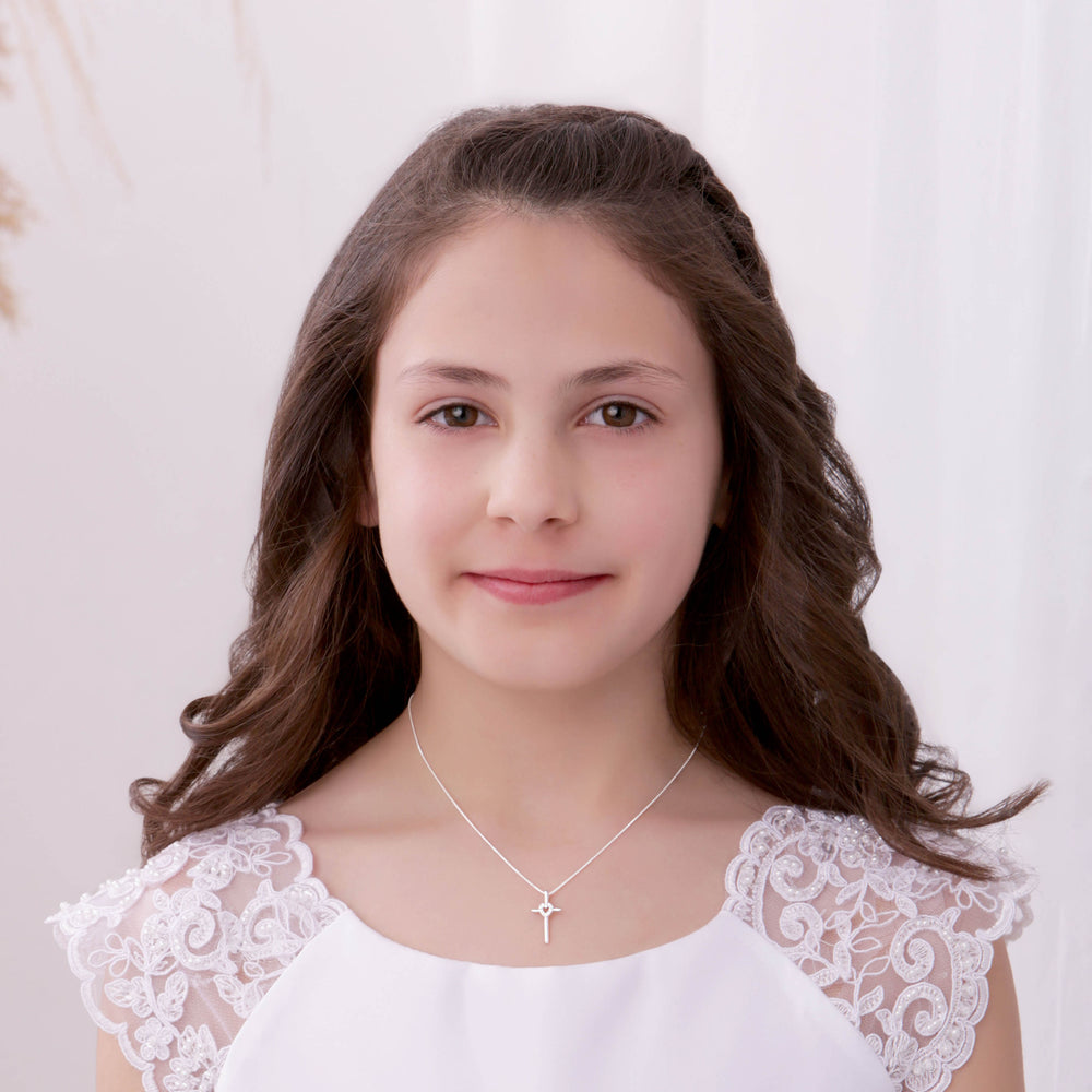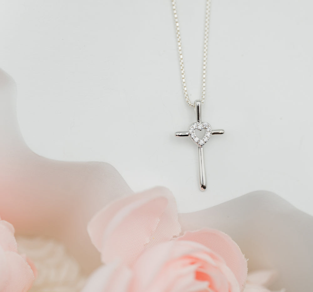 Sterling Silver Children's Cross Necklace with CZ Heart