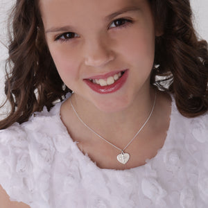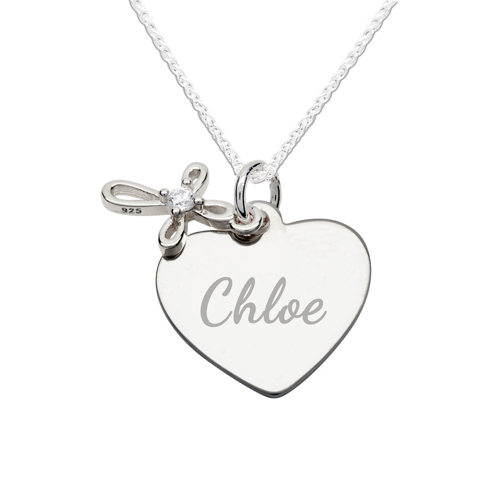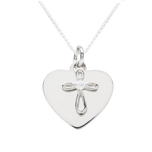 Sterling Silver Children's Engraveable Heart with Cross Necklace