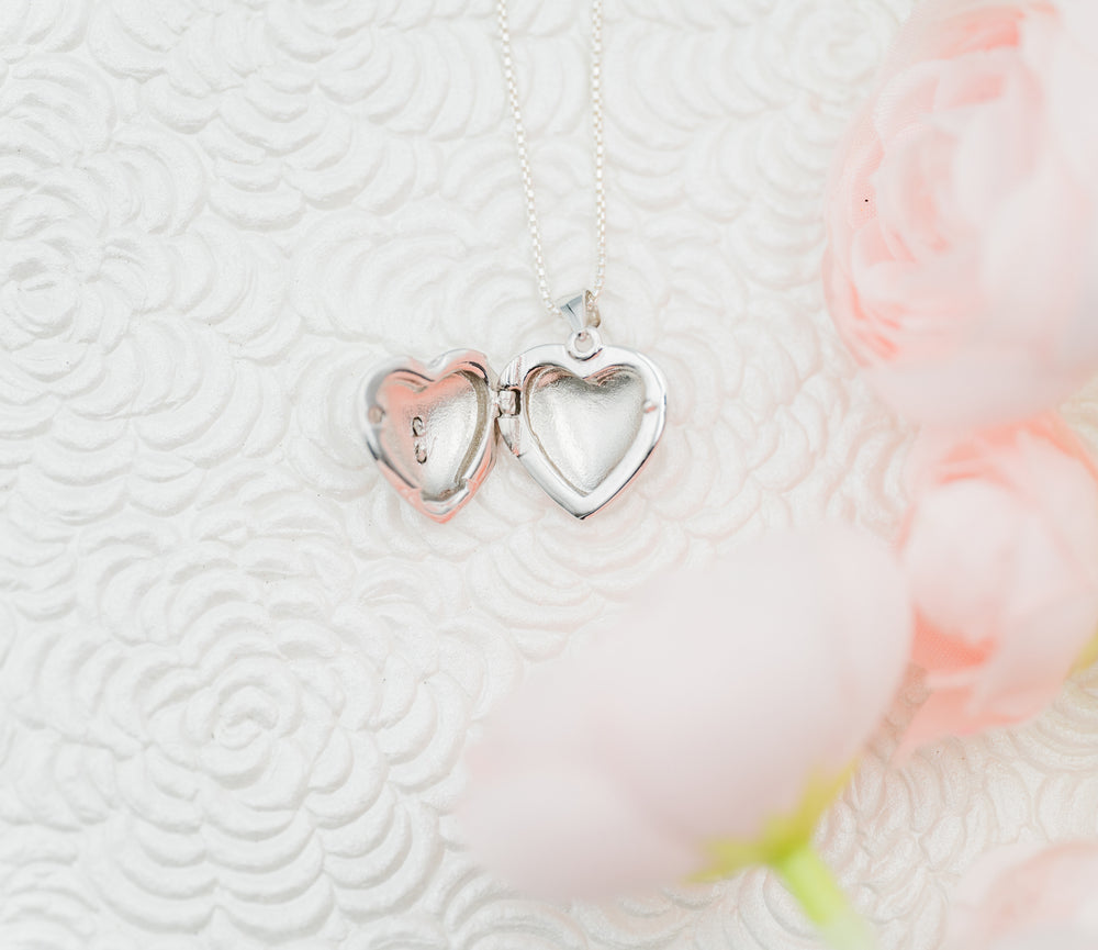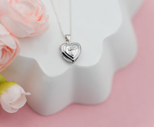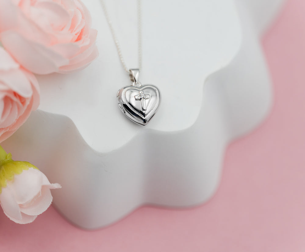 Sterling Silver Children's Heart Locket with Cross and White Sapphire