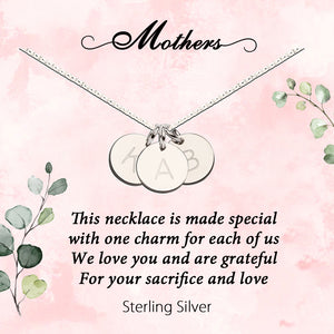 Special personalized keepsake gift for mothers from their children. Design the necklace with one initial charm for each child. Sterling silver 10mm dainty Initial discs for Moms with adjustable sizing for a perfect fit (16-18 chain). This is presented in a special gift box with a card stating: