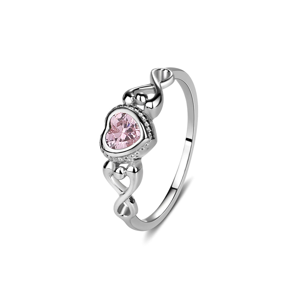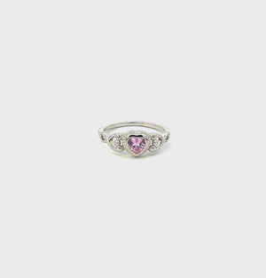 Precious sterling silver birthstone ring for children with a heart-shaped Pink CZ stone or October birthstone. These are high-quality rings with rhodium plating to prevent tarnish for little girls, toddlers, kids, and children. The are great pinky rings as well. This comes in a black velvet heart ring box and is available in sizes 1-5.