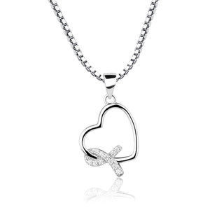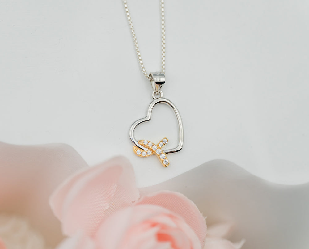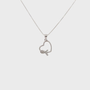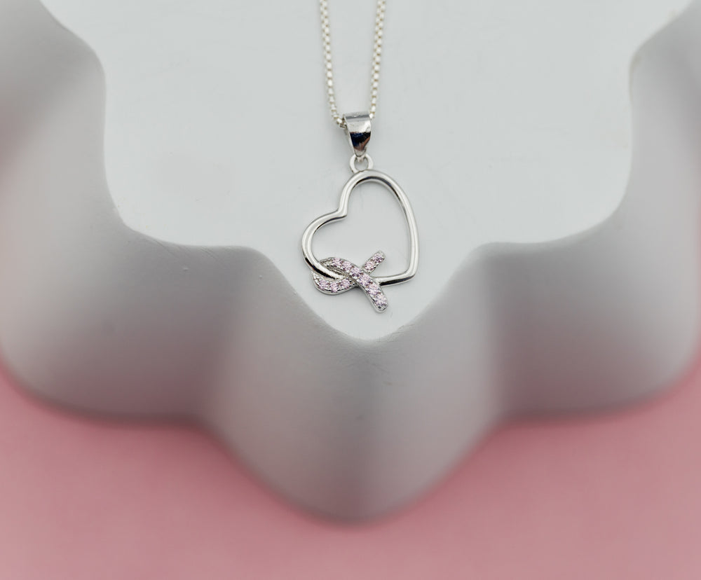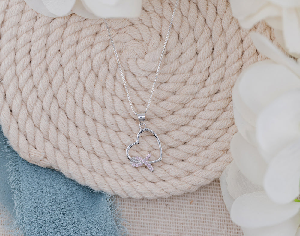 Sterling Silver Heart "Never Give up - You are Loved" Cancer Survivor and Awareness Ribbon Necklace