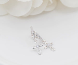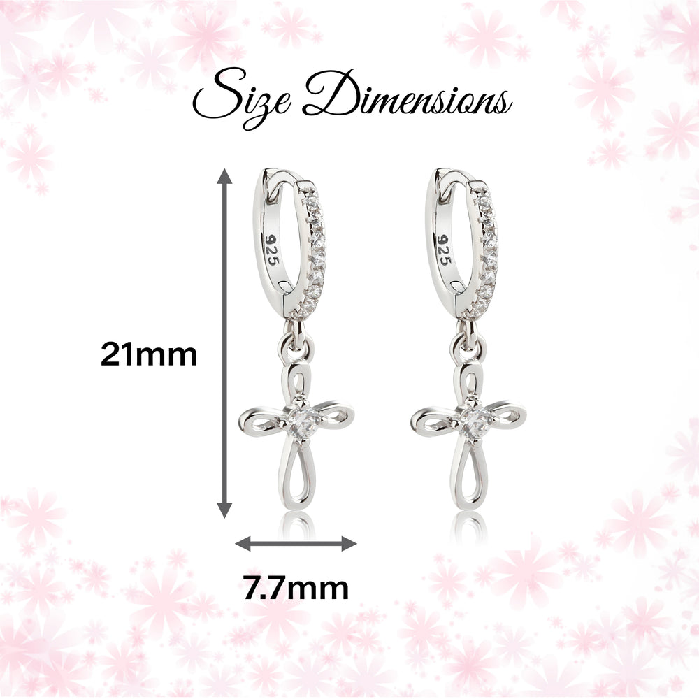 NEW! Sterling silver huggie earrings with cross and sparkling CZs. Beautiful and accented with a dangling infinity cross. Fantastic first communion gift with nice click closure for children, kids, toddlers, and little girls. These  are made with precious metals that are hypoallergenic and nickel free and should not irritate sensitive ears. 10mm Hoop