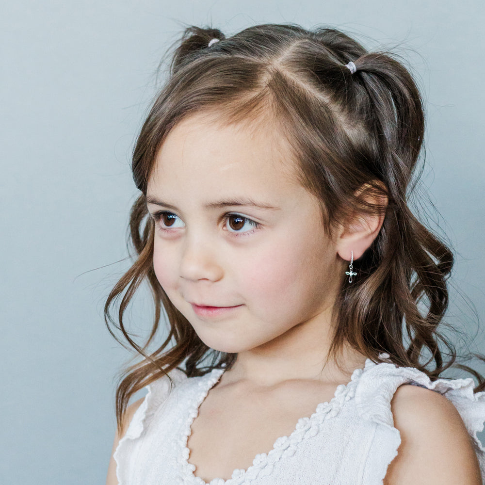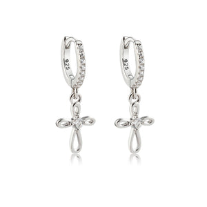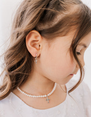 Sterling Silver Huggie Hoop Earrings with Cross for Kids 10mm