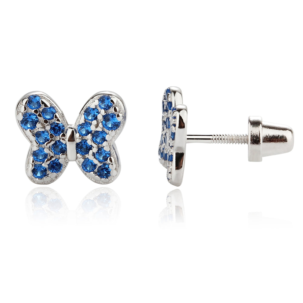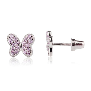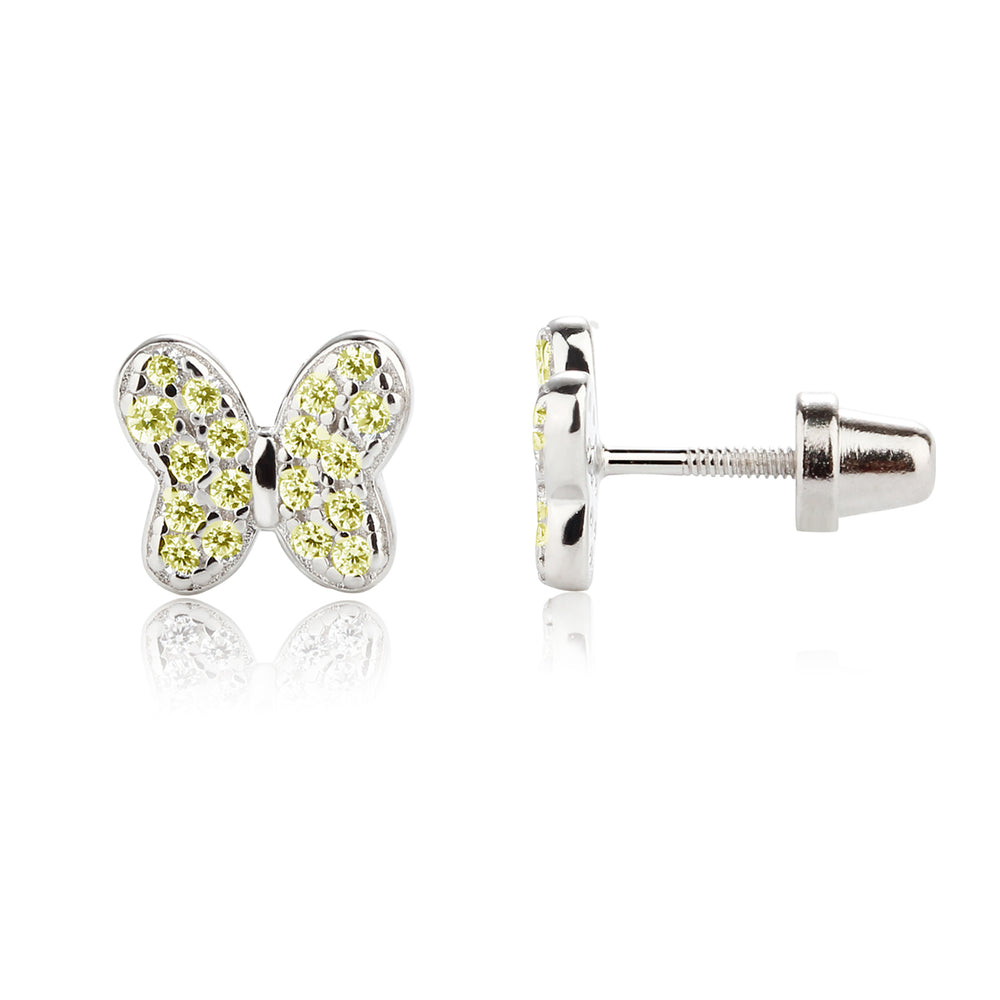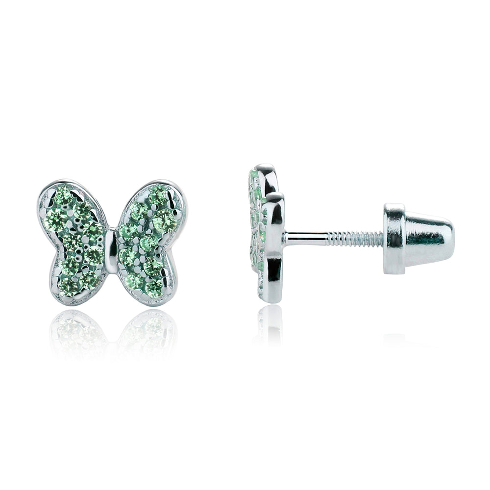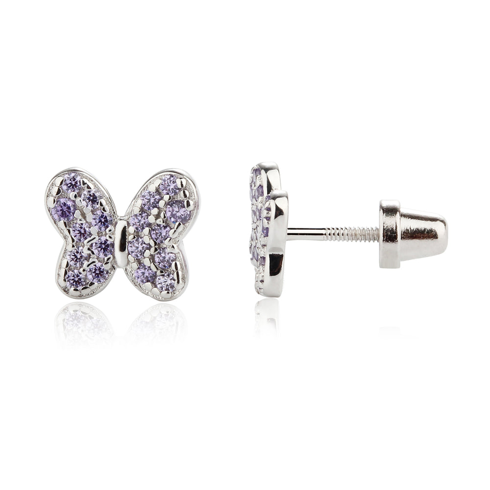 Sterling silver butterfly birthstone earrings with sparkling CZs. These sweet little earrings make a fun birthstone gift for toddlers and little girls. These feature screw backs so they stay put and protect the backs of her little ears. (measure 7.5 x 6.5mm)