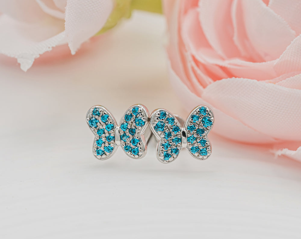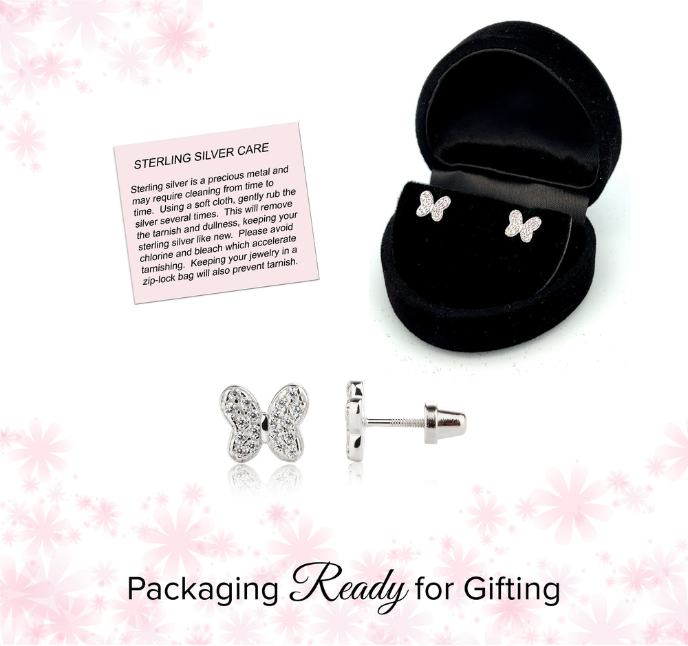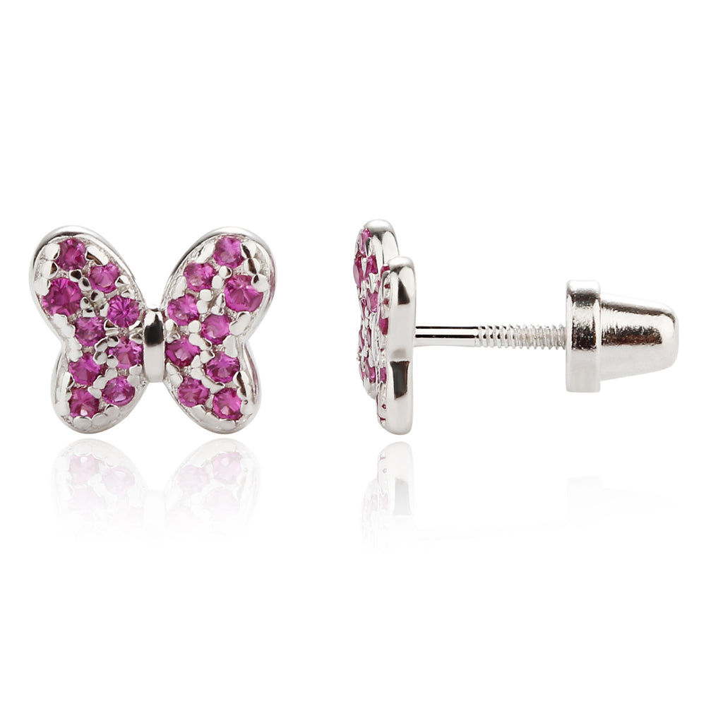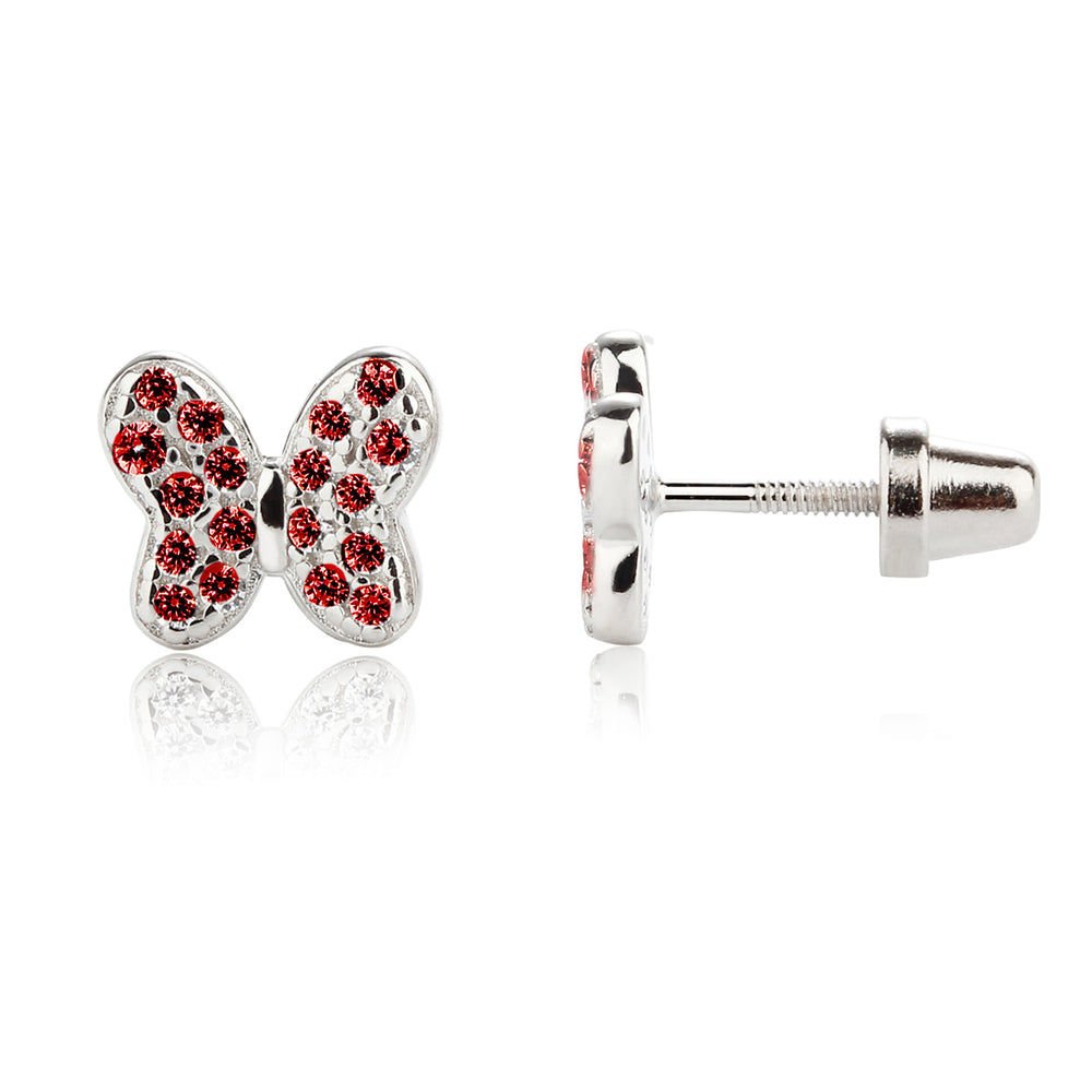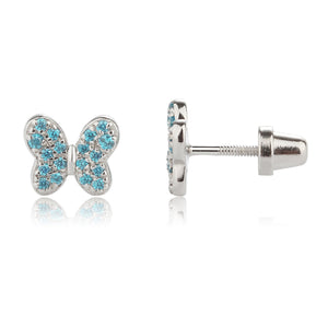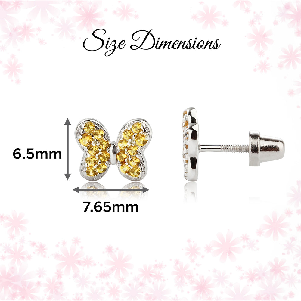 Sterling silver butterfly birthstone earrings with sparkling CZs. These sweet little earrings make a fun birthstone gift for toddlers and little girls. These feature screw backs so they stay put and protect the backs of her little ears. (measure 7.5 x 6.5mm)