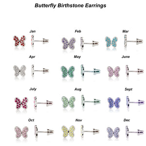 Sterling Silver Kid's Birthstone Butterfly Earrings for Toddlers and Girls