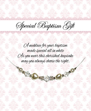 This precious Mormon or LDS baptism necklace for girls is made of sterling silver, pearl beads and sparkling crystals. Celebrate these cherished moments with this keepsake she will treasure forever! Necklace measures 13" (fits 6-12 years) and comes packaged in a gift box with a precious poem about her special day. This will be a keepsake she will treasure forever!