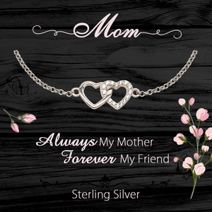 Special keepsake gift for mothers. Sterling silver jewelry for New Moms, Step Moms, adult daughter, or wife for Mother's Day or birthdays. This is presented in a special gift box with a card stating: Always my Mother, Forever my Friend. Special timeless piece that will be treasured forever.