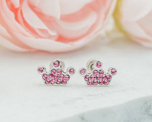 SALE! Sterling Silver Pink Princess Tiara Pave Earrings with Screw Backs