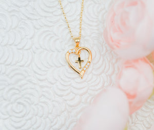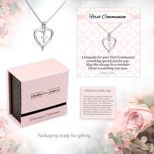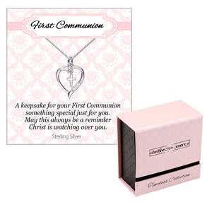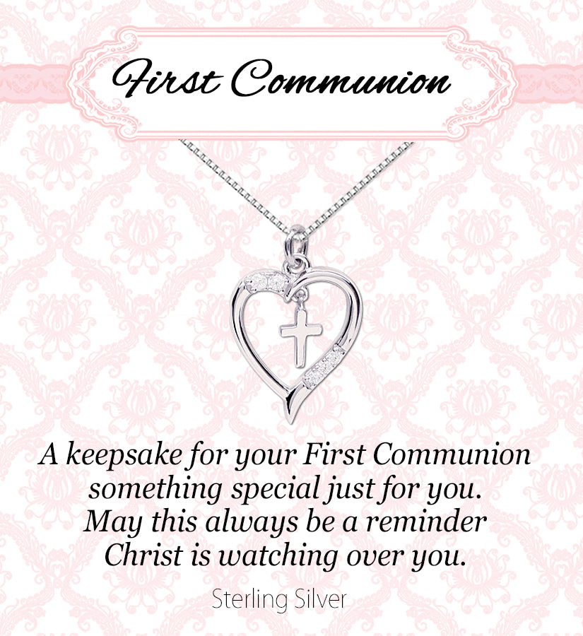 Timeless First Communion Cross Heart Necklace Gift for Girls